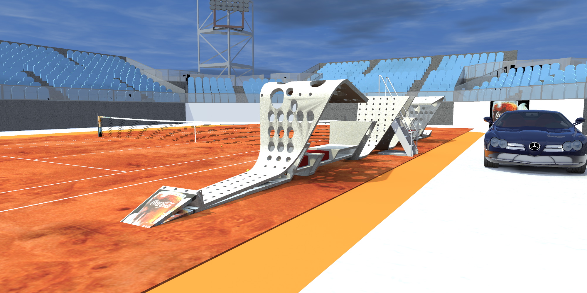 La propuesta se realiza para generar un elemento casi artístico de los espacios en donde los tenistas descansan durante el partido de tenis.