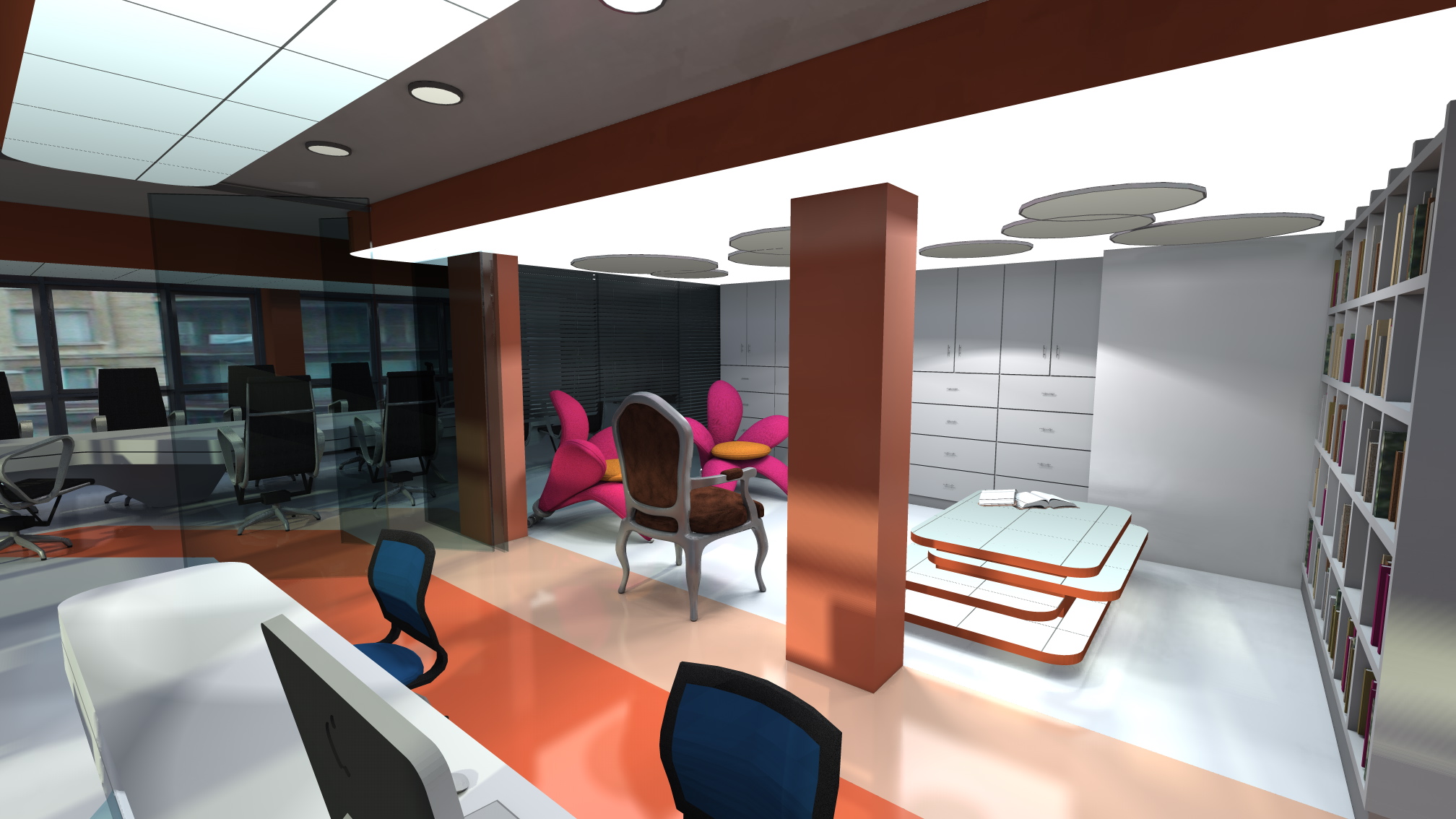 Un estudio de arquitectura debe tener la posibilidad de la interacción entre los diversos profesionales que trabajan, manteniendo en todo momento la posibilidad de la comunicación visual entre las personas.