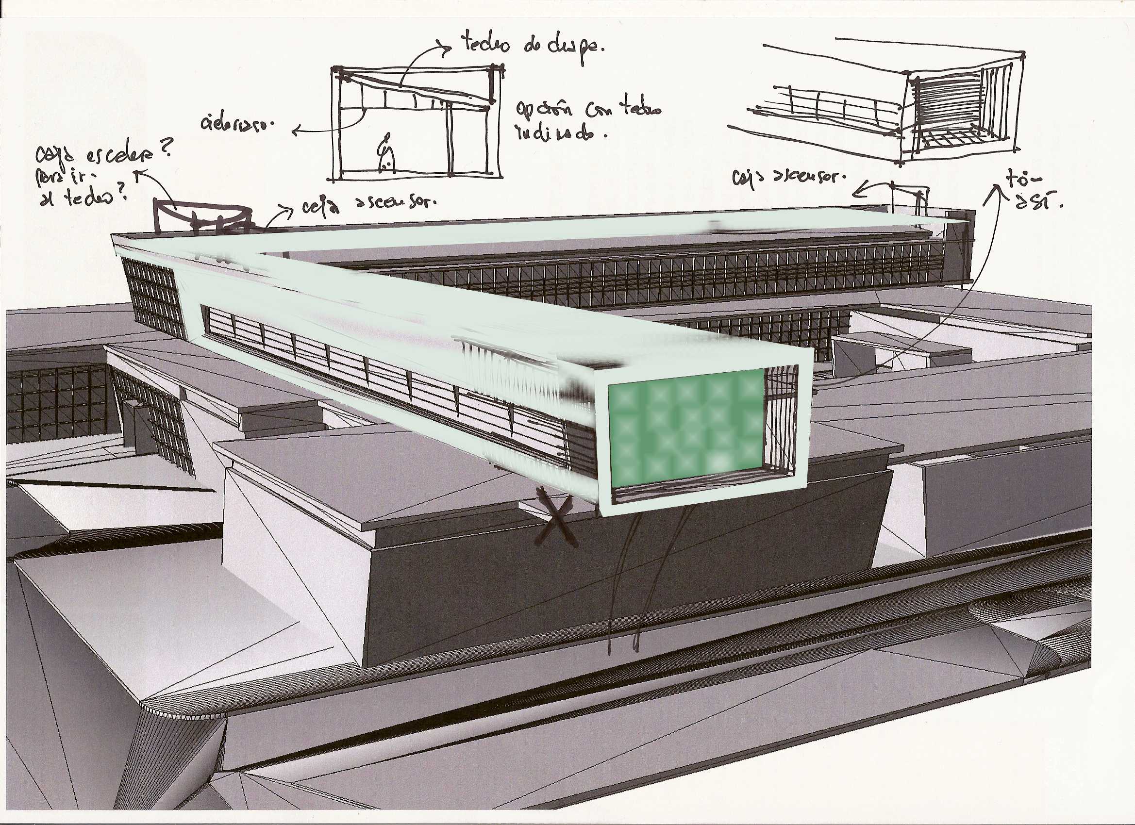 A su vez, la velocidad del paso de los vehículos, genera una sutil rotación en los elementos arquitectónicos del edificio. Esta torsión se manifiesta suavemente, pero signiicando la relación entre el pasajero, el vehículo y la tarnaquilidad del paraje interminable.