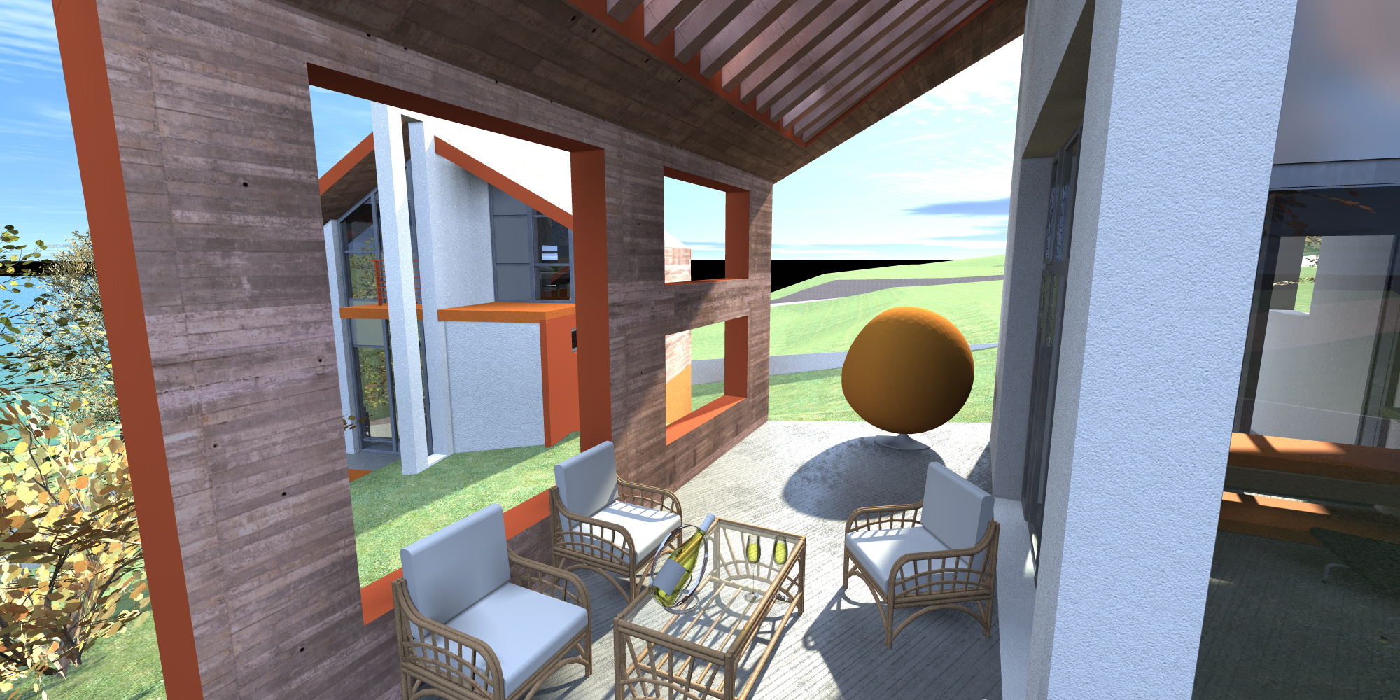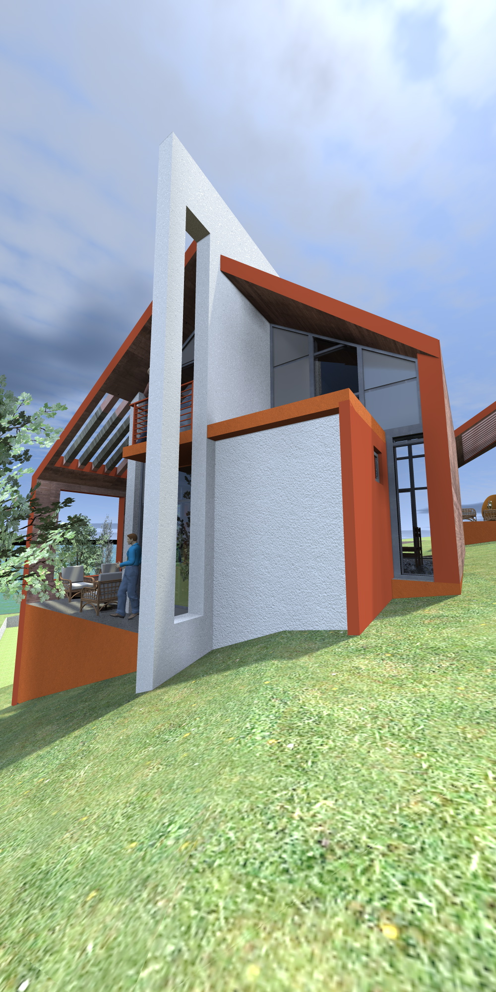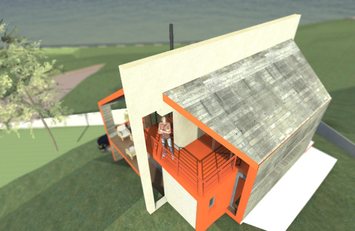 El Hormigón se ha coloreado de rojo, para poder cumplir con las normativas de la municipalidad, que exige techo a dos aguas de teja, o rojo.