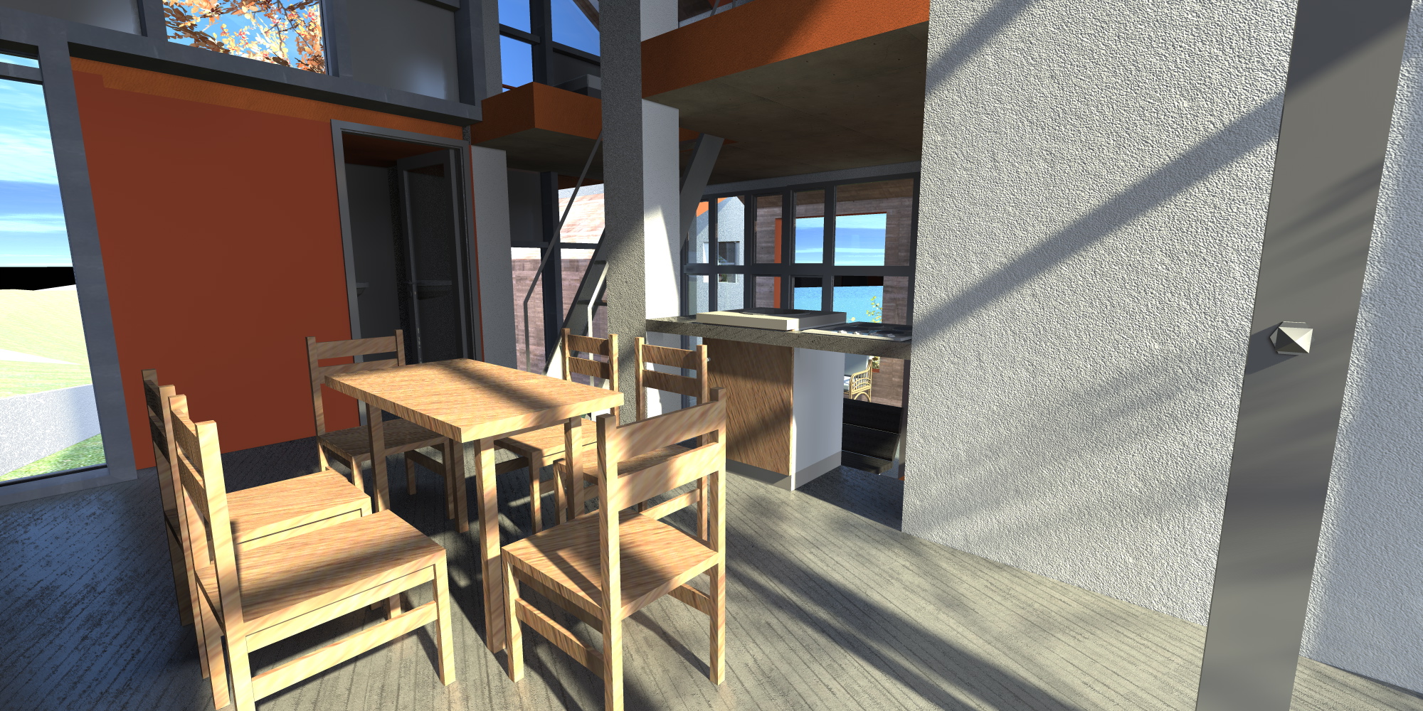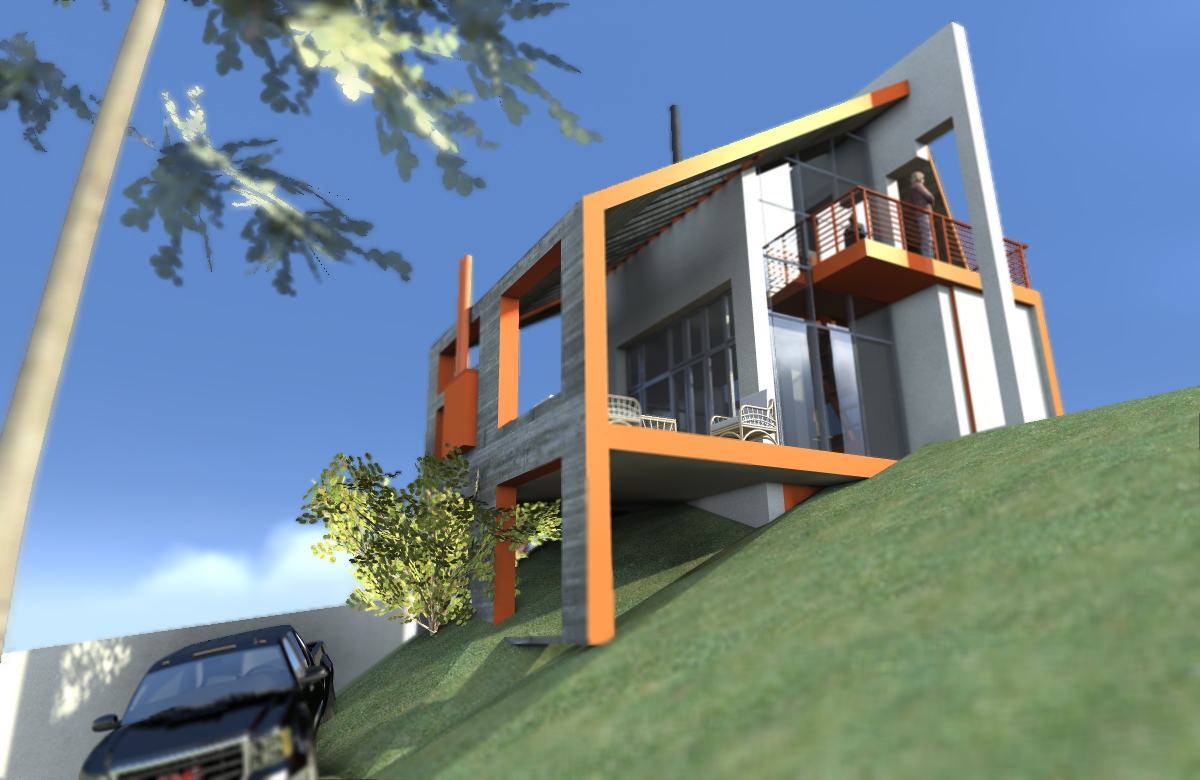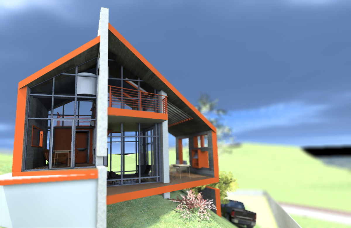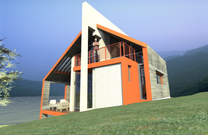 El Hormigón se ha coloreado de rojo, para poder cumplir con las normativas de la municipalidad, que exige techo a dos aguas de teja, o rojo.
