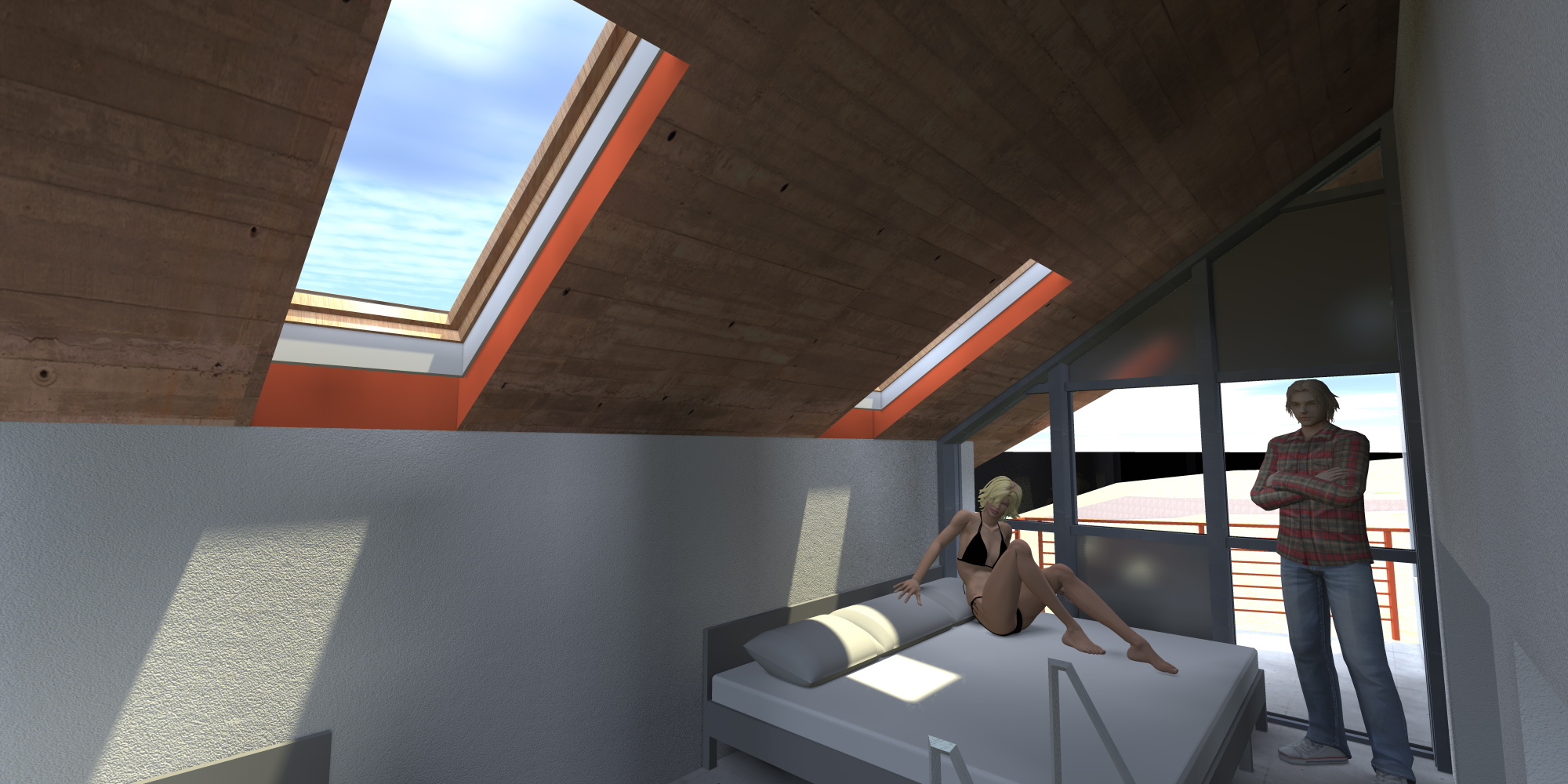El dormitorio, en la planta alta, será más caliente en invierno, con buenas entradas de sol.