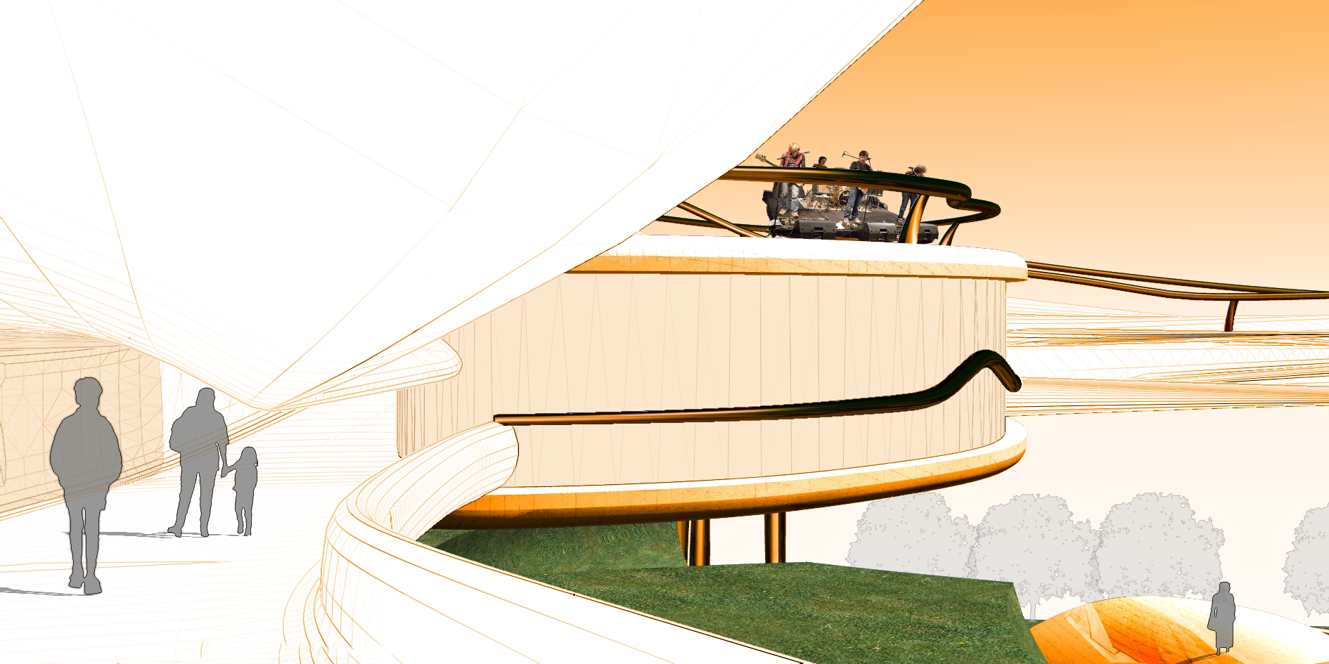 Una pista de skate y una gran plaza, que esta´por debajo y por encima.