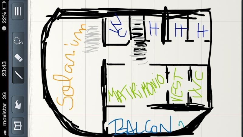 Es interesante ver cómo la gente utiliza las nuevas tecnologías para comunicarse, utilizando gráficos digitales, realizados con el dedo sobre una pantalla táctil de un móvil, y enviando por whats app el dibujo generado, mientras seguramente estaba sentado en su sofá, disfrutando de una cerveza, interactuaba generando los primeros esbozos de la arquitectura en donde vivirá durante los próximos años.