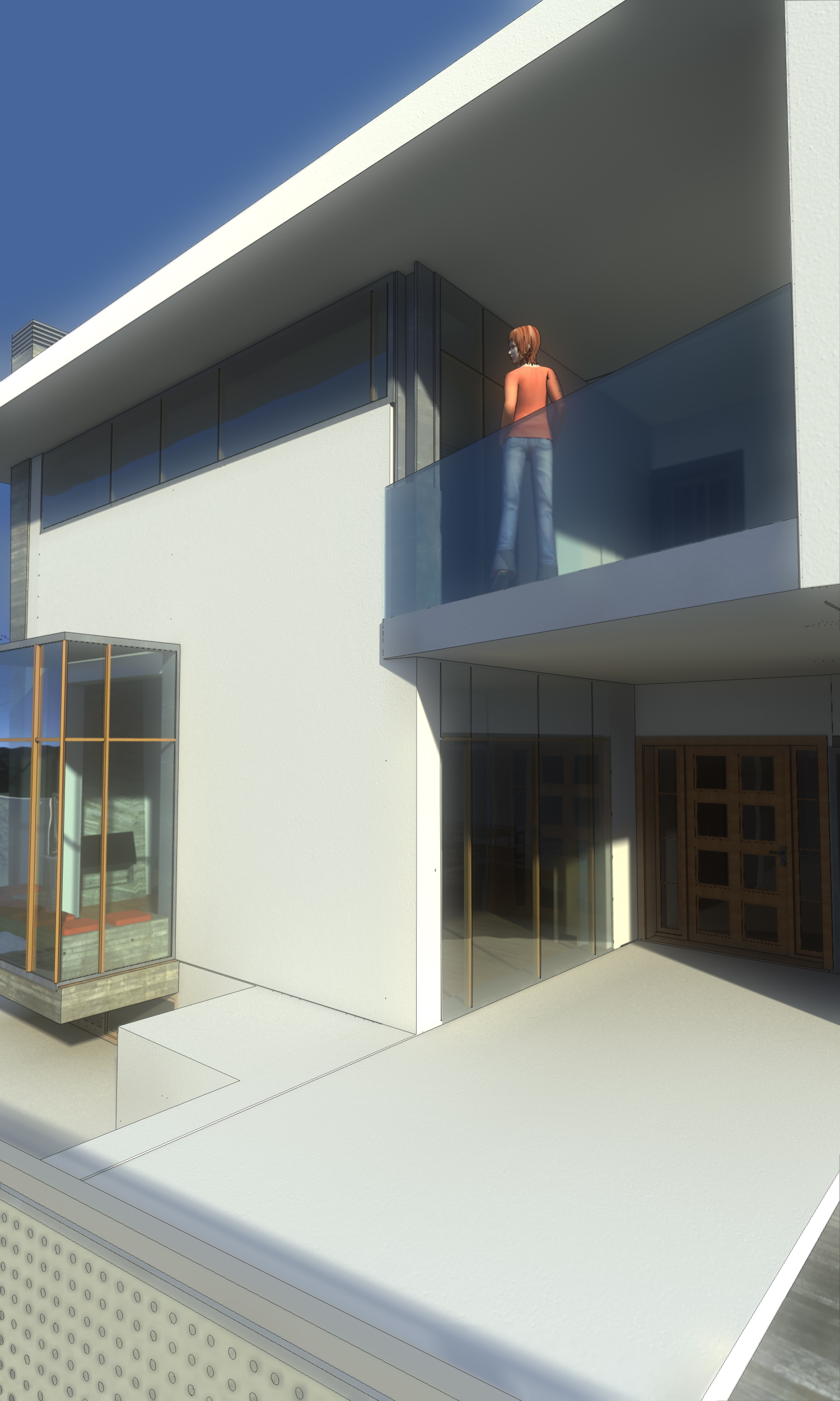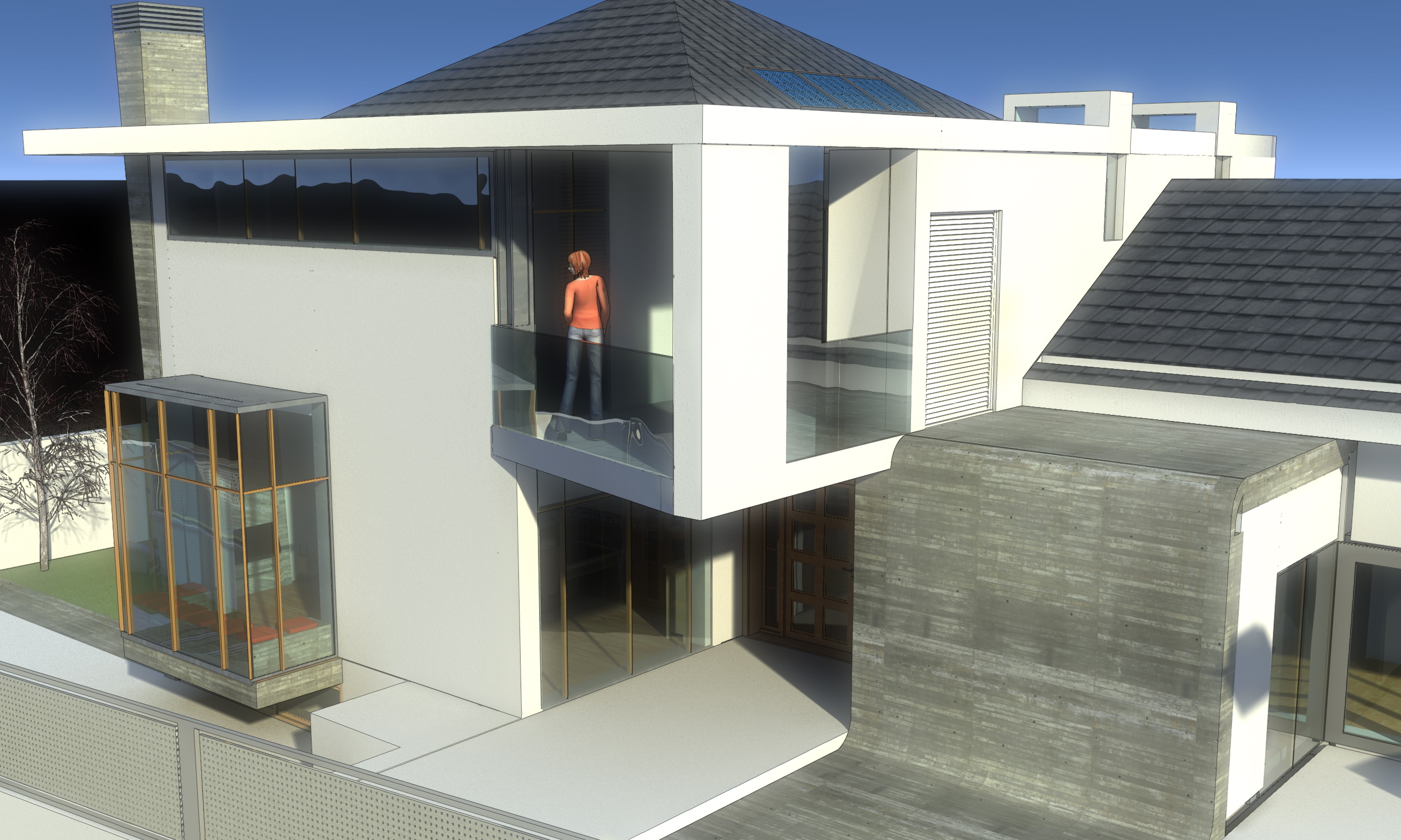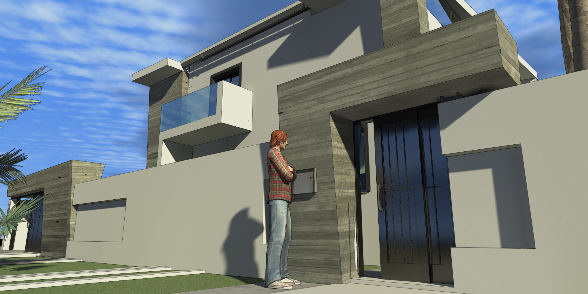 Lo primero, un casa con techo inclinado, importante altura. Logrado en la imagen de la fachada que es bastante imponente.
