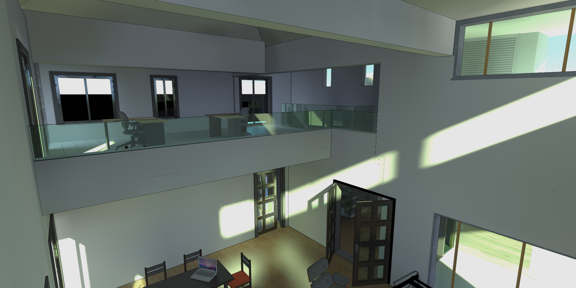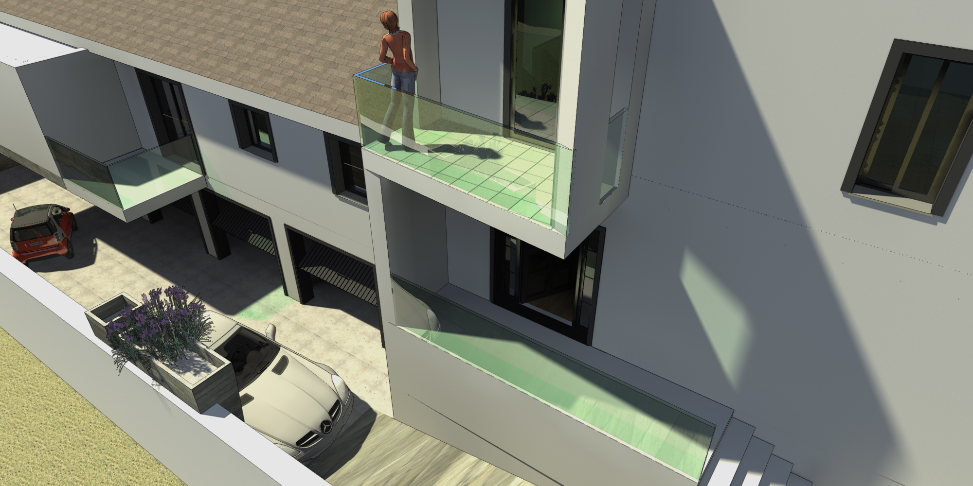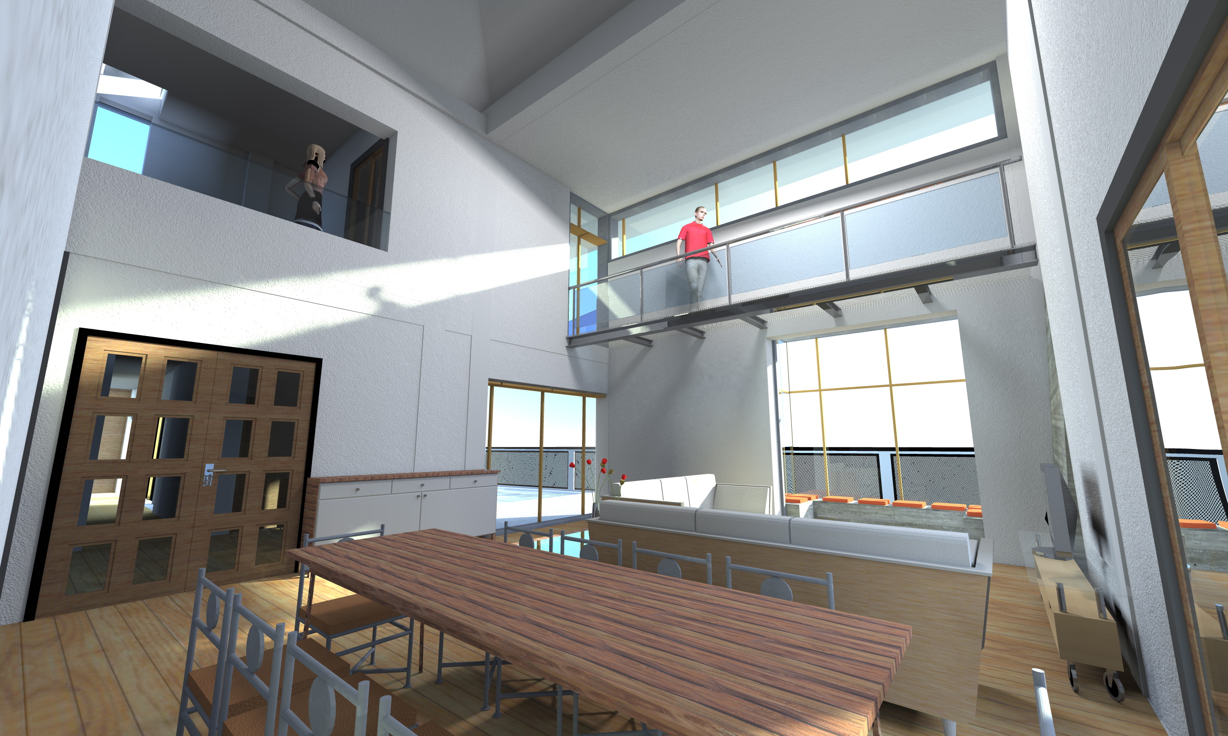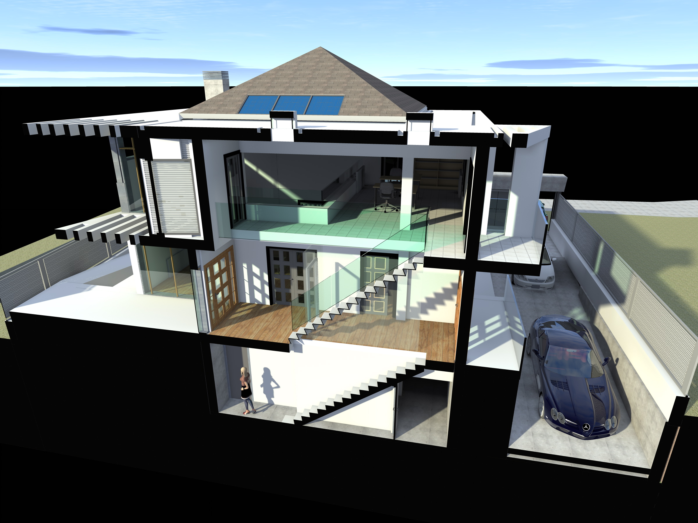 Lo primero, un casa con techo inclinado, importante altura. Logrado en la imagen de la fachada que es bastante imponente.
