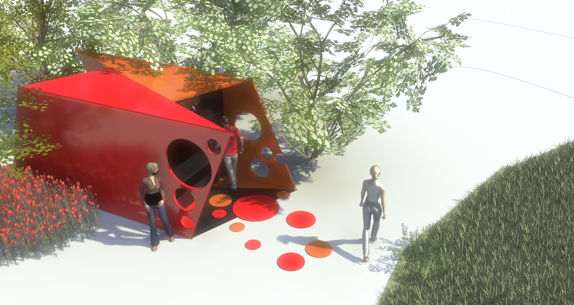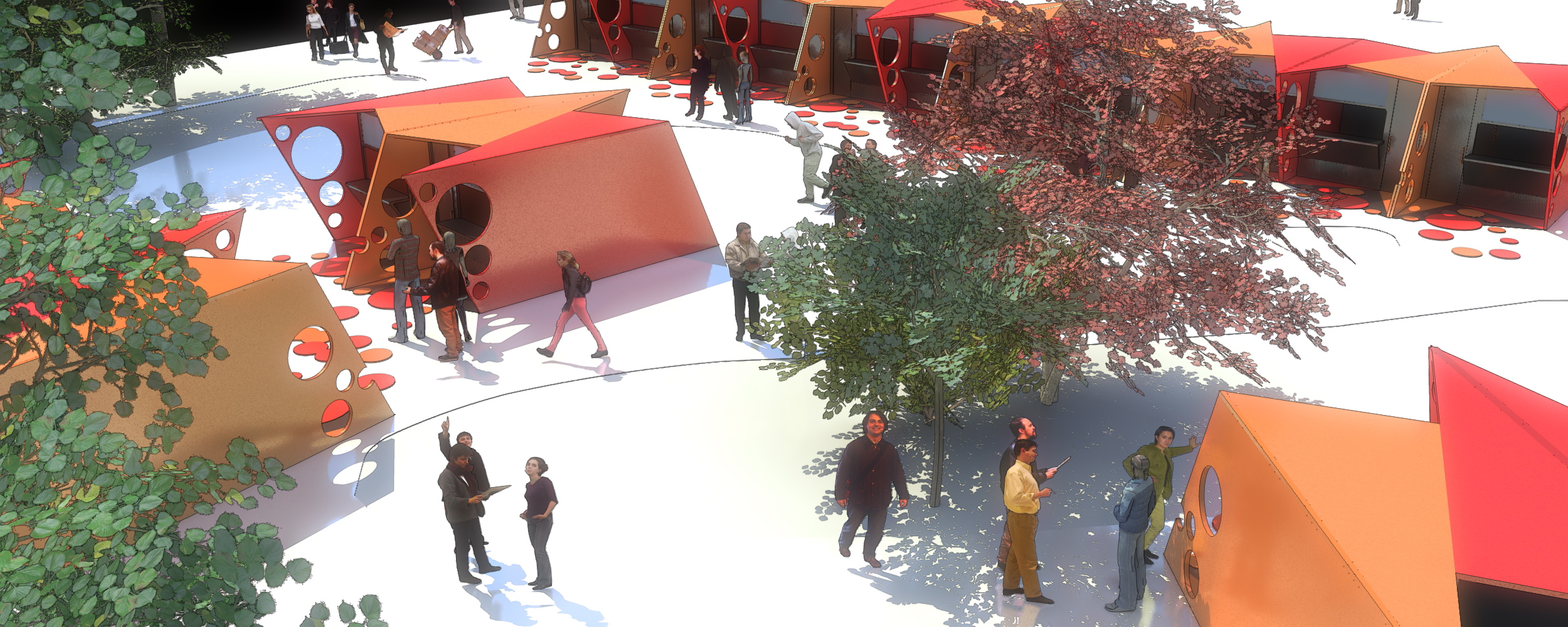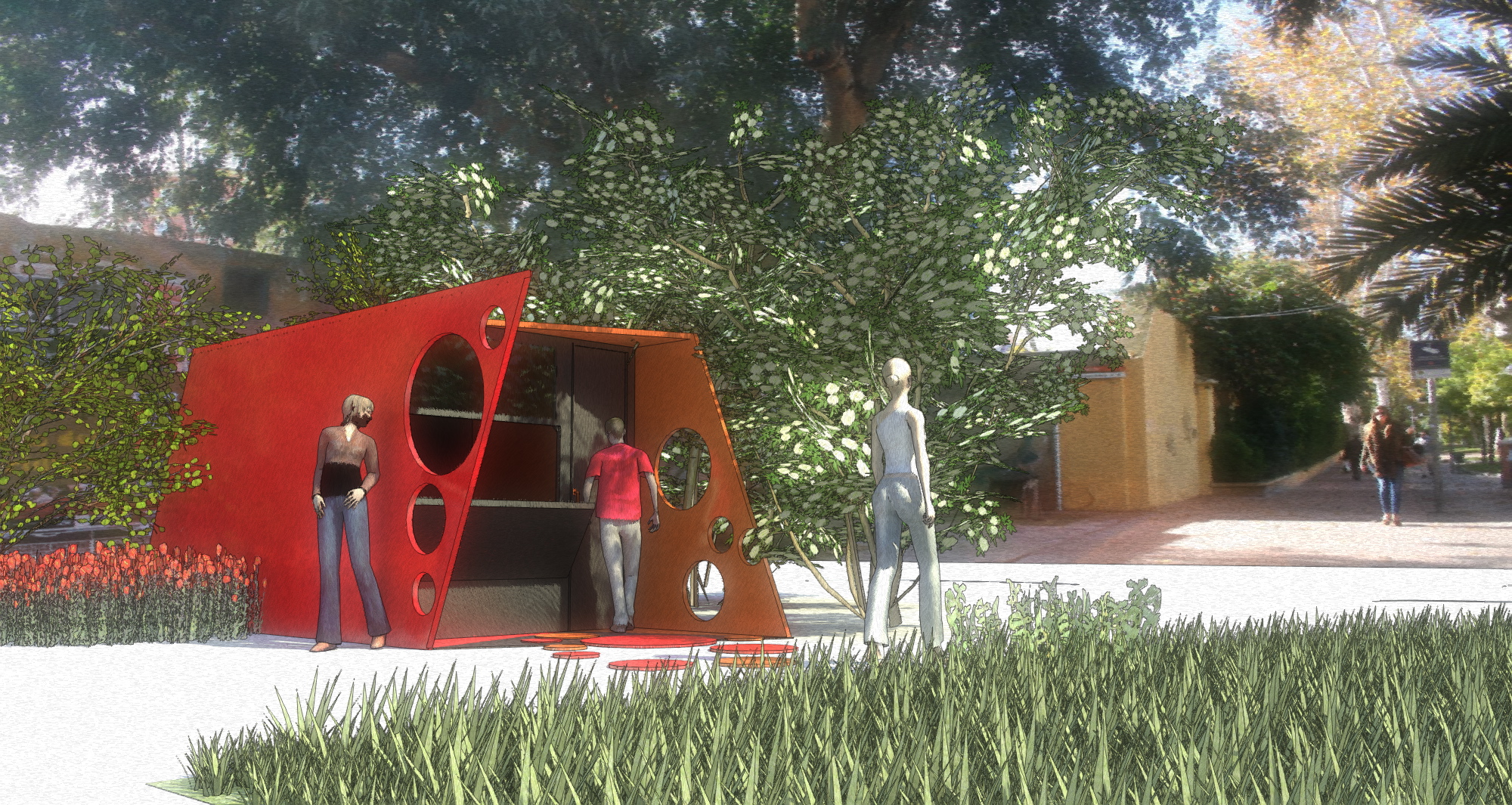 Para el concurso de la caseta para artesanos del Jardín del Salitre, en Murcia, hemos tomado la idea del ORIGAMI o Papirolexia.