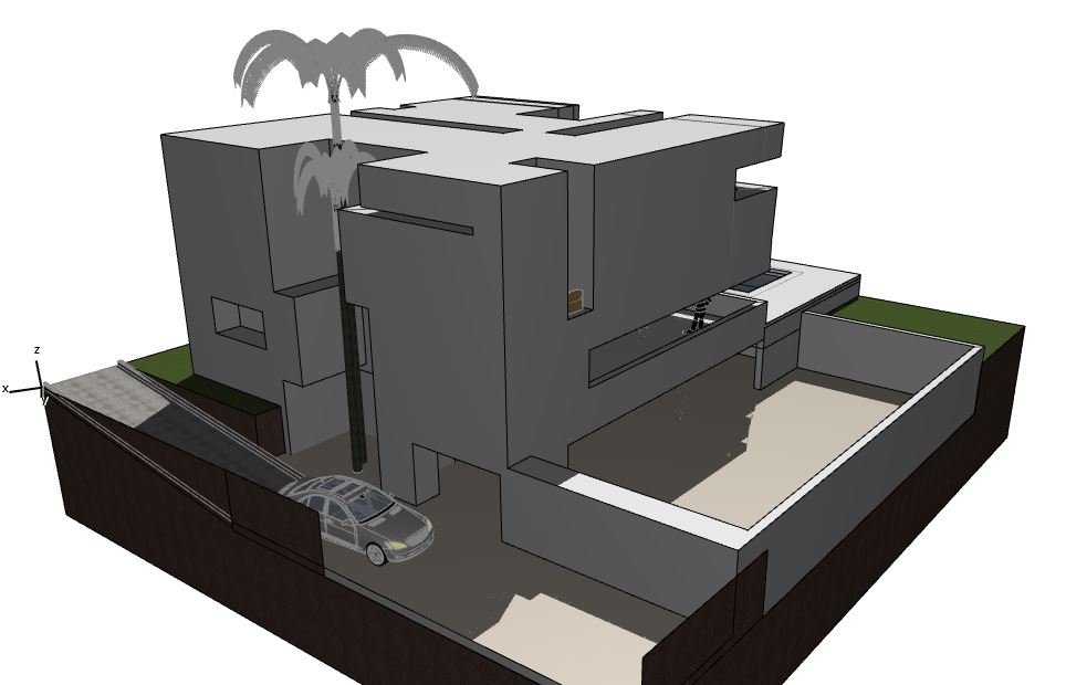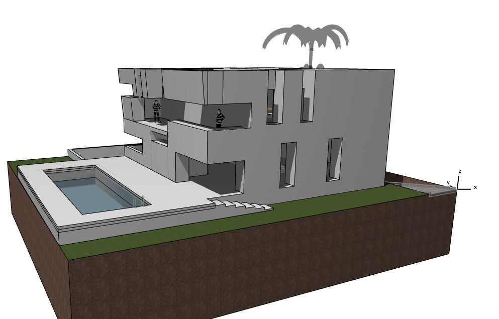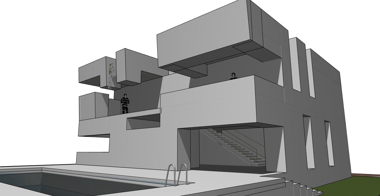 Los primeros bocetos, o imagenes generadas en el ordenador, me permiten adaptar las formas de Chillida al solar, al entorno, y a las normativas existentes. Ya que tengo retiros, y líneas en donde puedo y no puedo edificar.