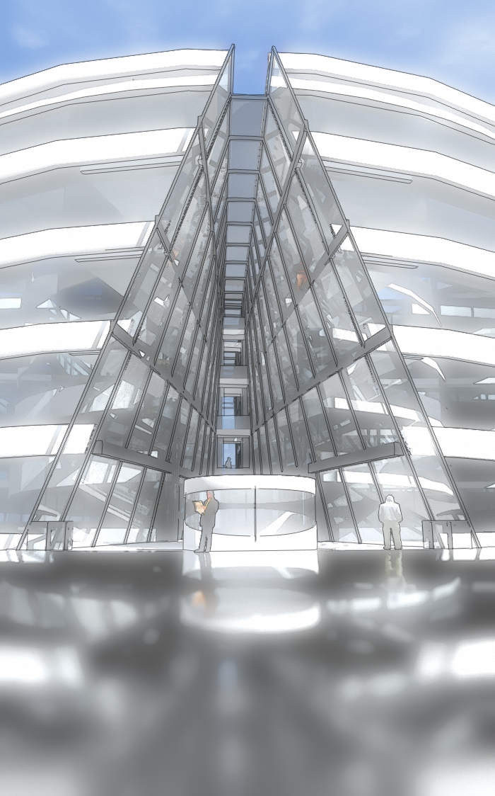 El proyecto de Sinapsis Estudio, para los Juzgados de Guardia del Campus de la Justicia de Madrid, pertenece a un grupo de concursos realizados en el 2006-2007 que la comunidad de Madrid realizó basándose en un Master Plan.