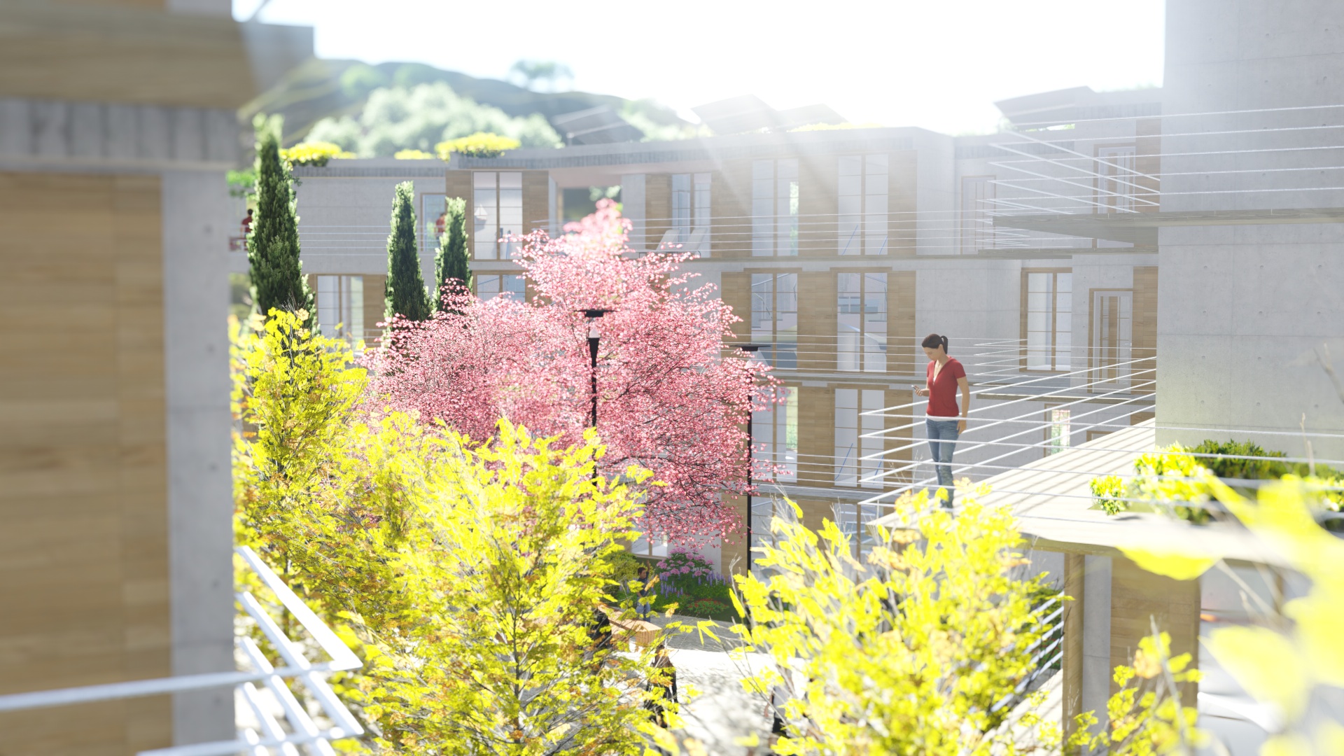 Las viviendas tomarán entonces, la forma del terreno, adaptándose, apoyándose y subiendo según la topografía así lo requiera. Generando terrazas con las viviendas y ubicadas de tal manera que todas las viviendas tengan doble orientación, con vistas al valle, al bajo, y vistas a las sierras. Teneindo todas las orientaciones para aprovecharlas en las diferentes horas del día. Potenciando de este modo la iluminación natural, y la ventilación cruzada, disminuyendo el consumo energético gracias al aprovechamiento de los recursos.